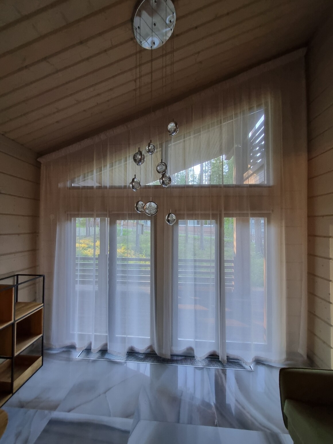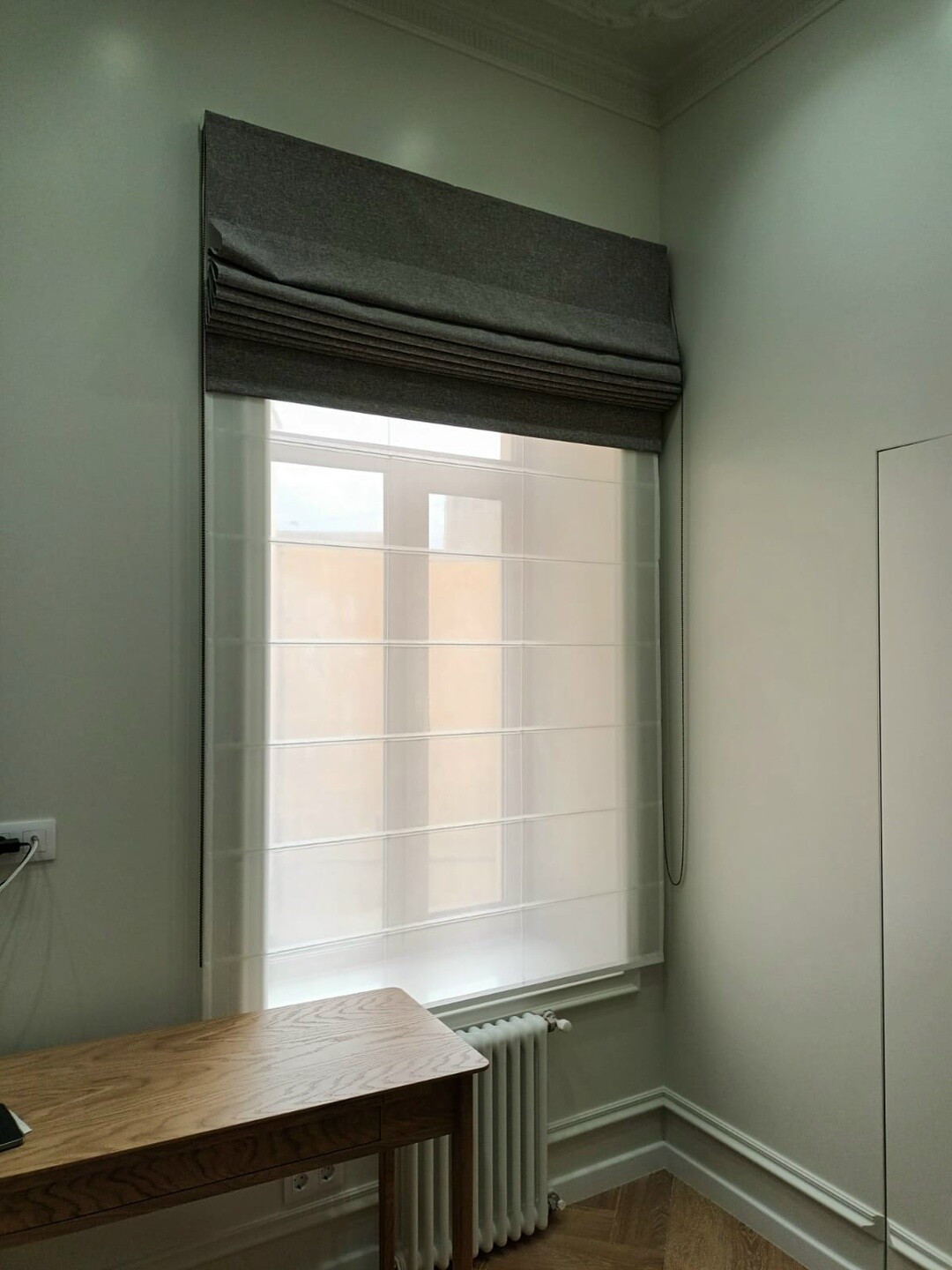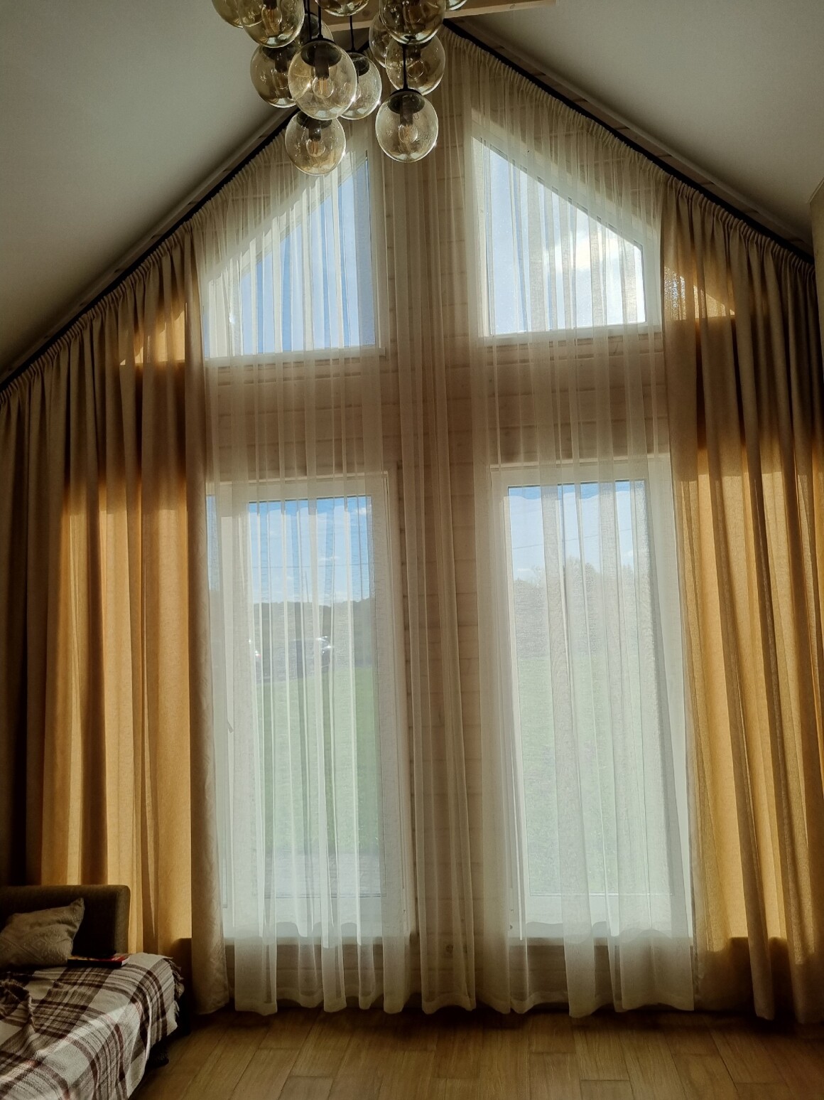 Классические портьеры и тюль по индивидуальным характеристикам, римские шторы, окна сложных форм